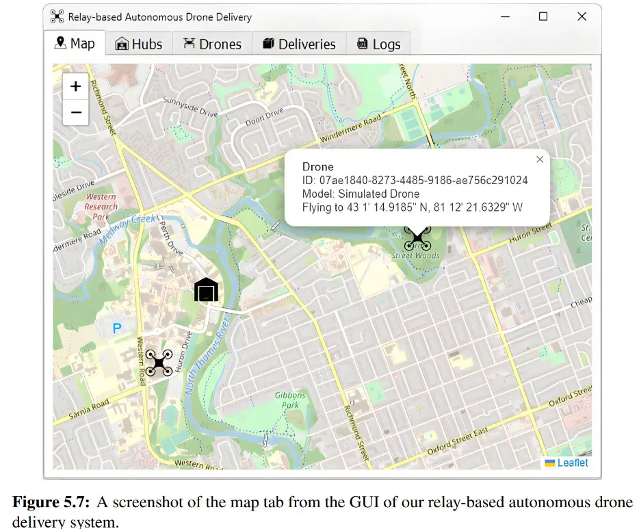 Our prototype uses a coordinated network of autonomous drones to overcome these limitations. Deliveries are completed using a relay-based approach where drones hand off the package at stopover sites, recharge, and head back. Intelligent scheduling enables deliveries that are not possible for a single drone to complete and ensures efficient use of drone resources. Our innovative prototype stands as a pioneering achievement in the realm of long-distance drone delivery.
